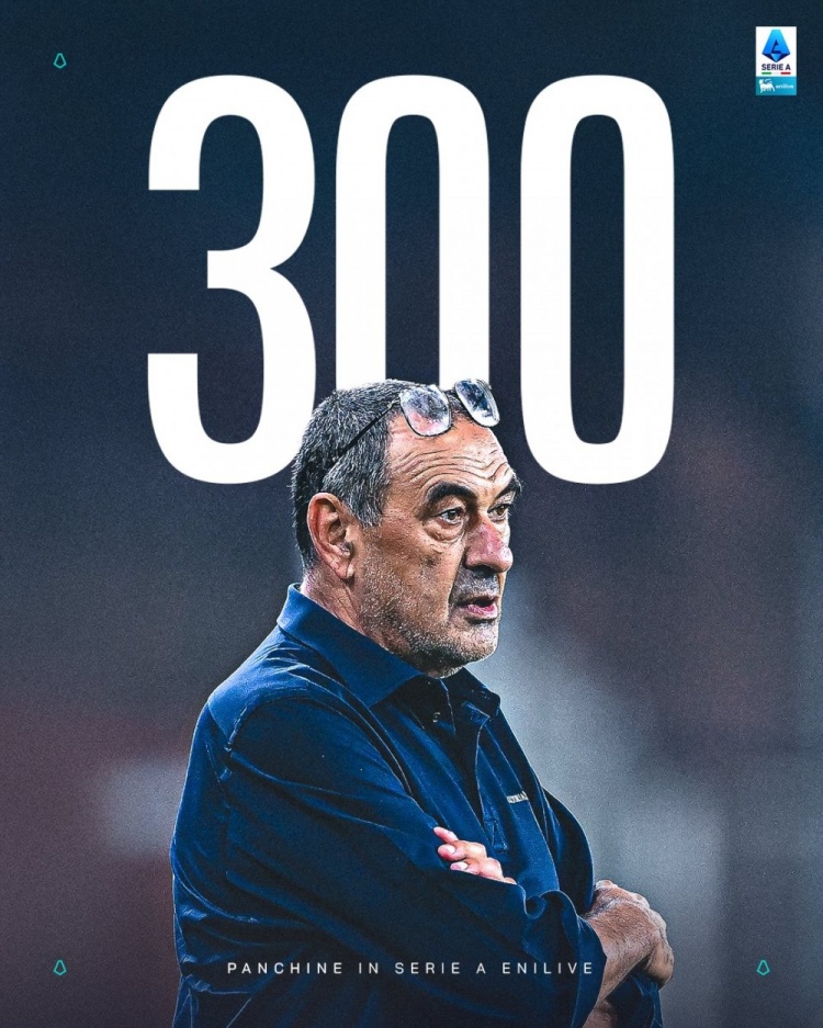 意甲官方社媒晒出萨里海报,道贺萨里抓教意甲300场里程碑。