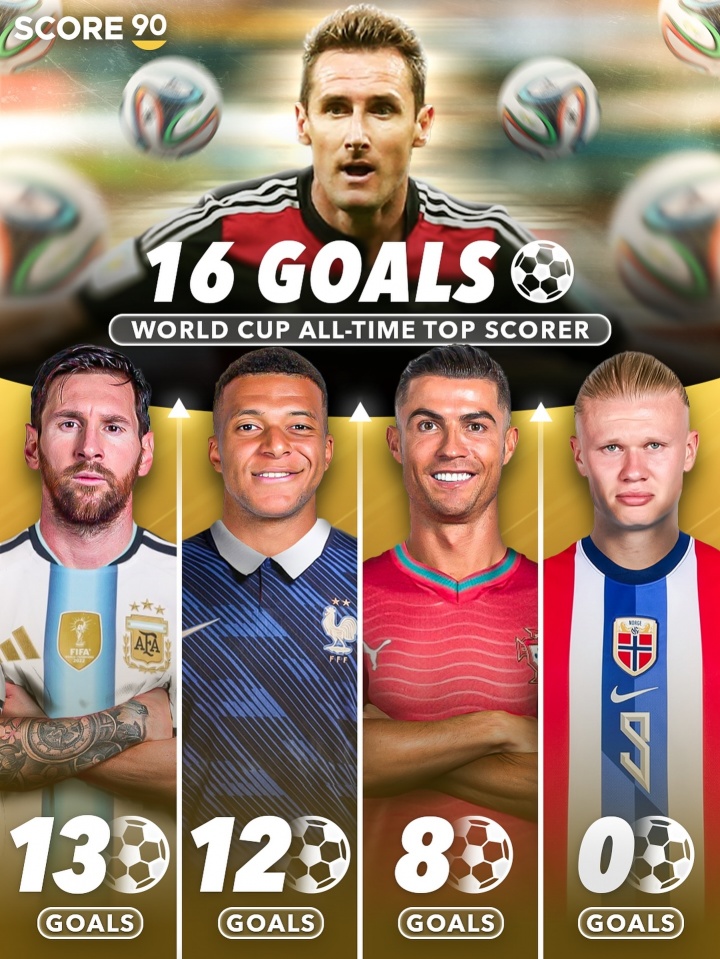当今宇宙杯历史弓手王是克洛泽,他在随德国队参预的4届宇宙杯中打进16球,杰出了15球的罗纳尔多。现役球员中,还是打进13球的梅西与12球的姆巴佩,来岁宇宙杯均有契机杰出克洛泽,而8球的凯恩、C罗、内马尔难度则相比大。