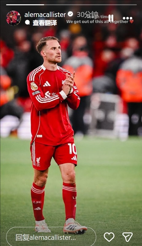 11月23日讯 在利物浦0-3输给诺丁汉丛林后,麦卡利斯特更新了酬酢媒体饱读吹球队。