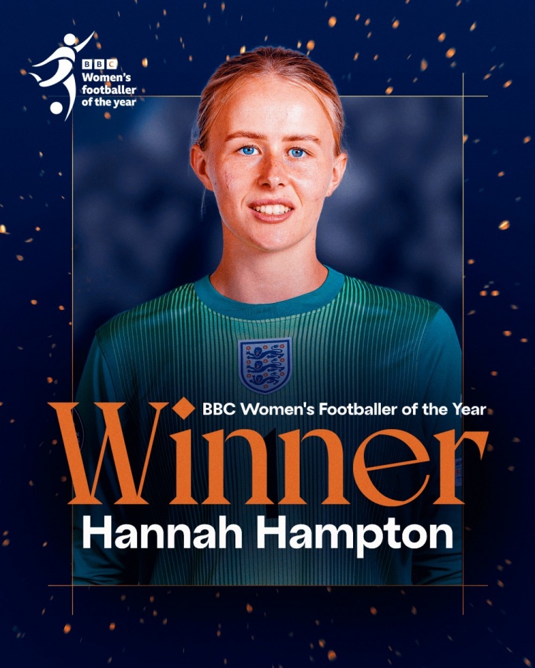 11月25日讯 BBC官方晓谕,切尔西门将汉普顿当选BBC年度最好女足球员。