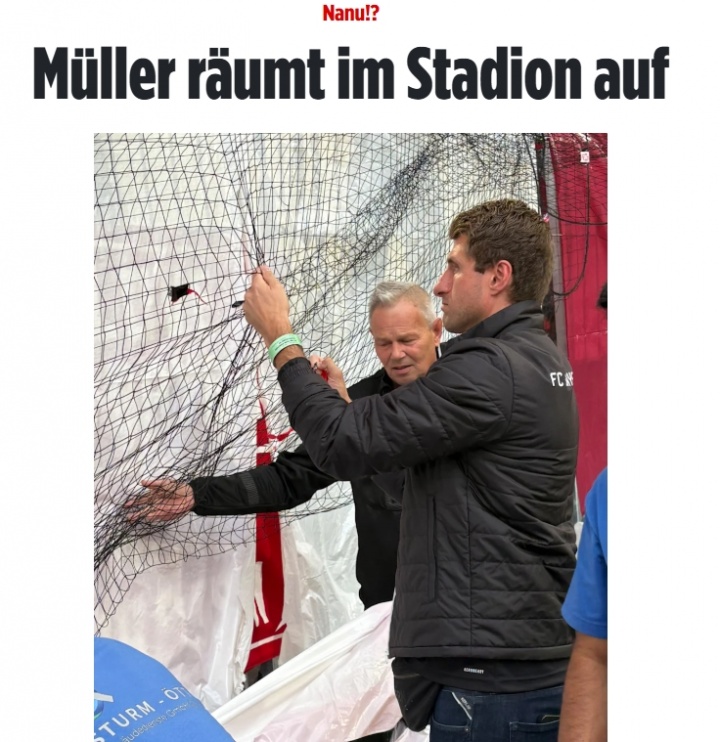 在拜仁5-0大捷汉堡的比赛开赛前,安联球场内片刻出现一位与穆勒极为一样的男人。他身穿俱乐部夹克,正在协助计帐南看台死忠球迷刚刚用于TIFO扮演的红白塑料膜。
