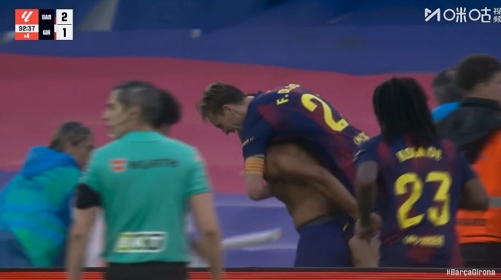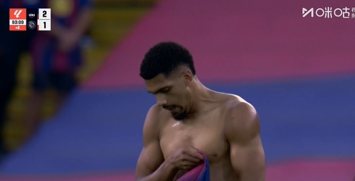 绝杀进球遽然,阿劳霍心计脱衣庆祝,巴萨全队也堕入猖獗庆祝中。