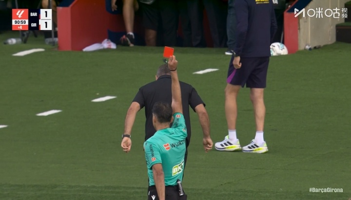 比赛补时阶段,弗里克不悦裁判,两黄变一红被罚下,他将无缘下轮的国度德比。