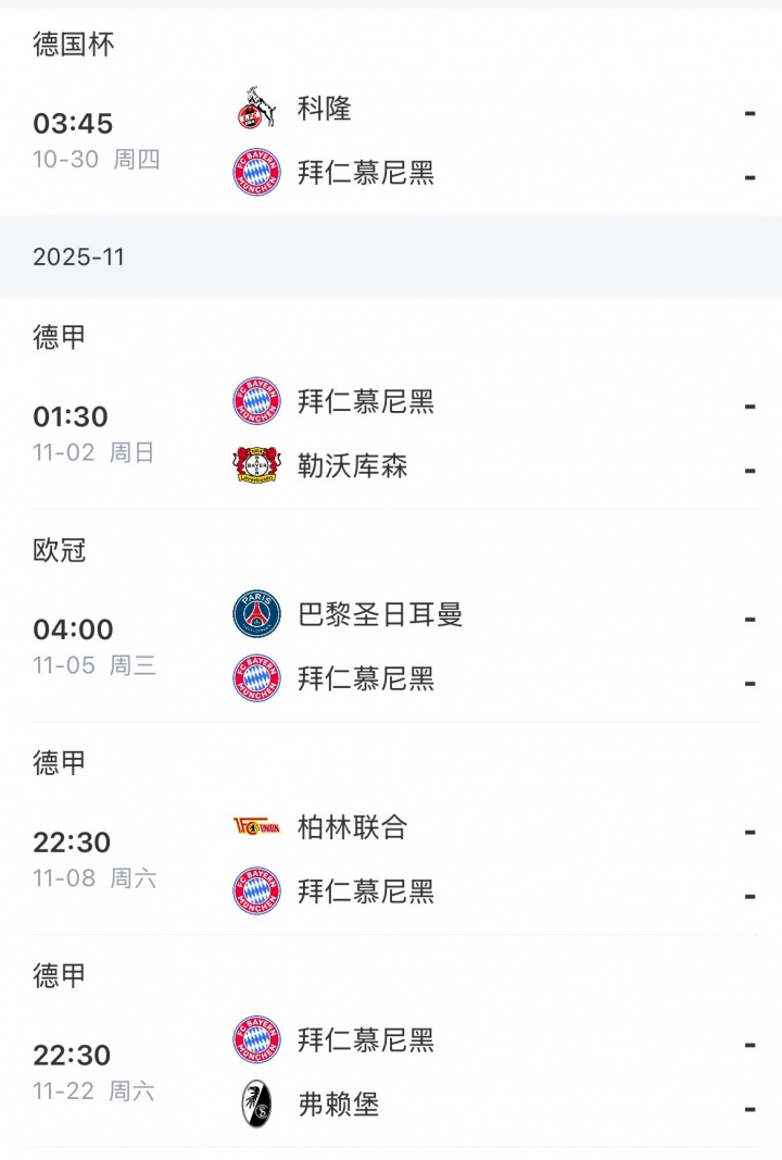 拜仁后续赛程