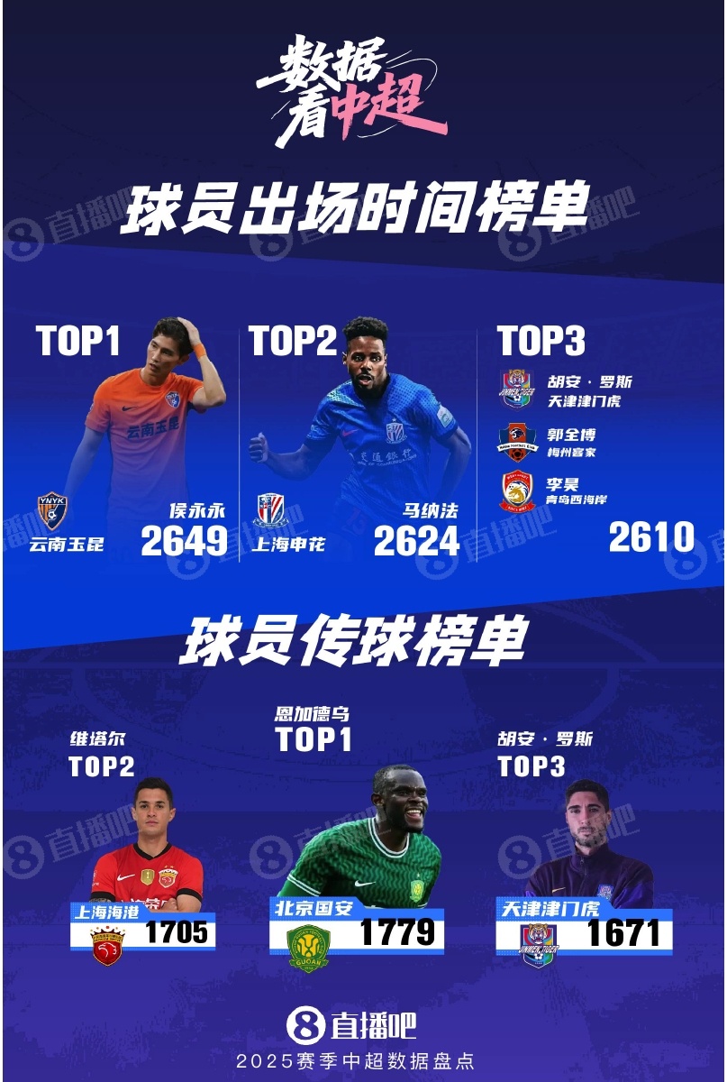 你的位置:欧洲杯直播 > 法甲 > 数据看中超|侯永永领跑球员出场技巧 恩加德乌领跑传球榜单