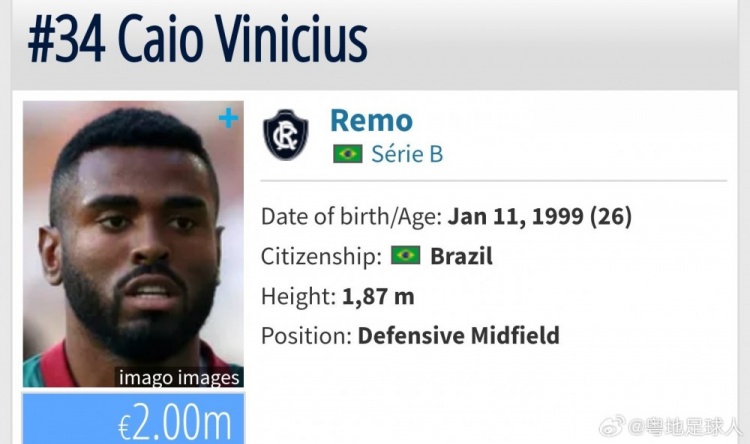 12月3日讯 据博主“粤地足球东谈主”社媒分解,遵循于巴乙瑞模贝雷的26岁中场球员卡奥·维尼修斯接近加盟某支西南地区的中超球队,该博主示意球员已抵达该球队地方的地级市。