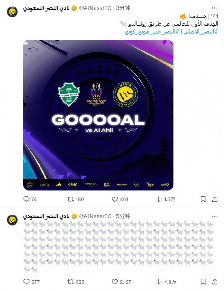 你的位置:欧洲杯直播 > 法甲 > 🐐C罗代表利雅得收效攻入第100粒进球,收效官推发GOAT刷屏