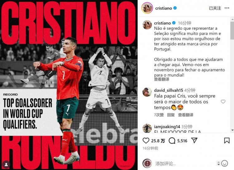 C罗社媒晒出海报庆祝,配文:“家喻户晓,代表国度队出战对我来说兴味紧要,因此能为葡萄牙已毕这一独到里程碑,我深感自重。”