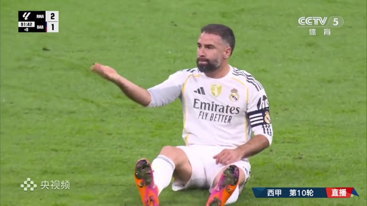 比赛第92分钟,突前的阿劳霍与卡瓦哈尔战役后倒在皇马禁区内,阿劳霍、拉什福德、亚马尔等多名巴萨球员举手投诉,卡瓦哈尔暗意“起来起来”。