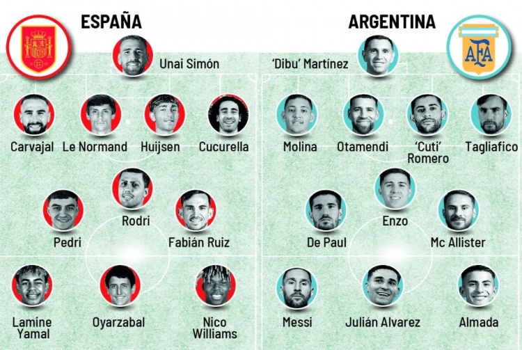 10月13日讯 字据《马卡报》报说念,西班牙队vs阿根廷队的西洋杯可能来岁3月在多哈进行,《马卡报》随后撰文对比了两队首发情况。