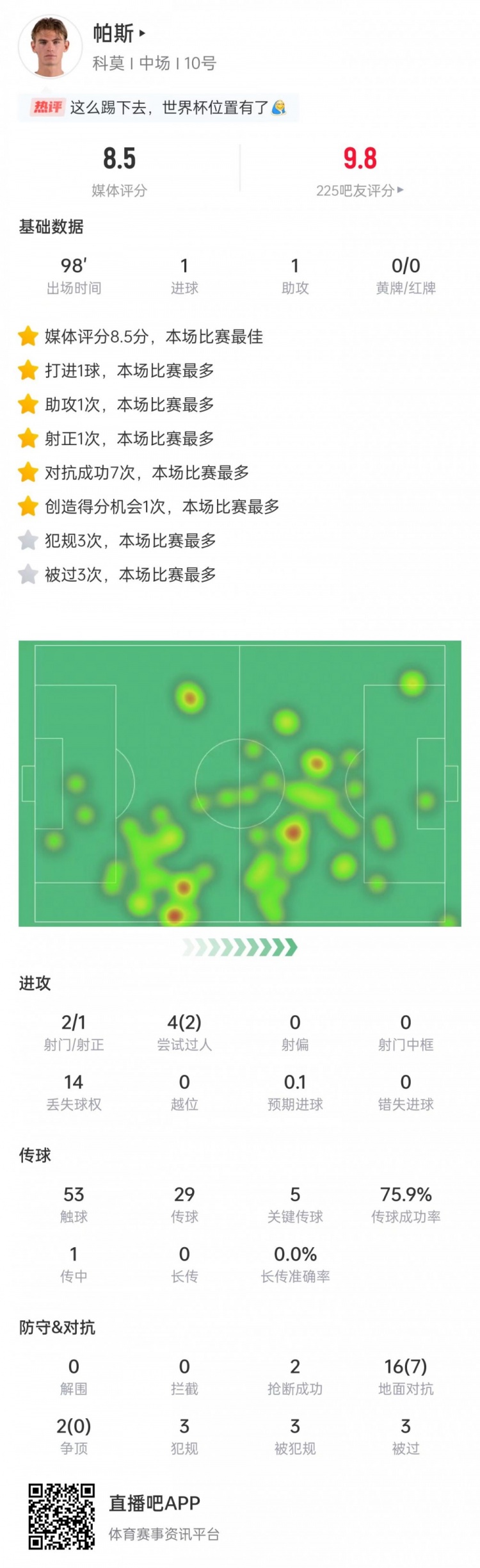 此役尼科-帕斯传射立功,匡助科莫取胜,他当选本场比赛意甲官方最好球员。