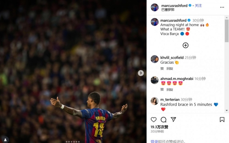 在酬酢媒体上,拉什福德庆祝了本场比赛的告成,他写谈:精彩的主场之夜,何等棒的一支球队!加油巴萨!