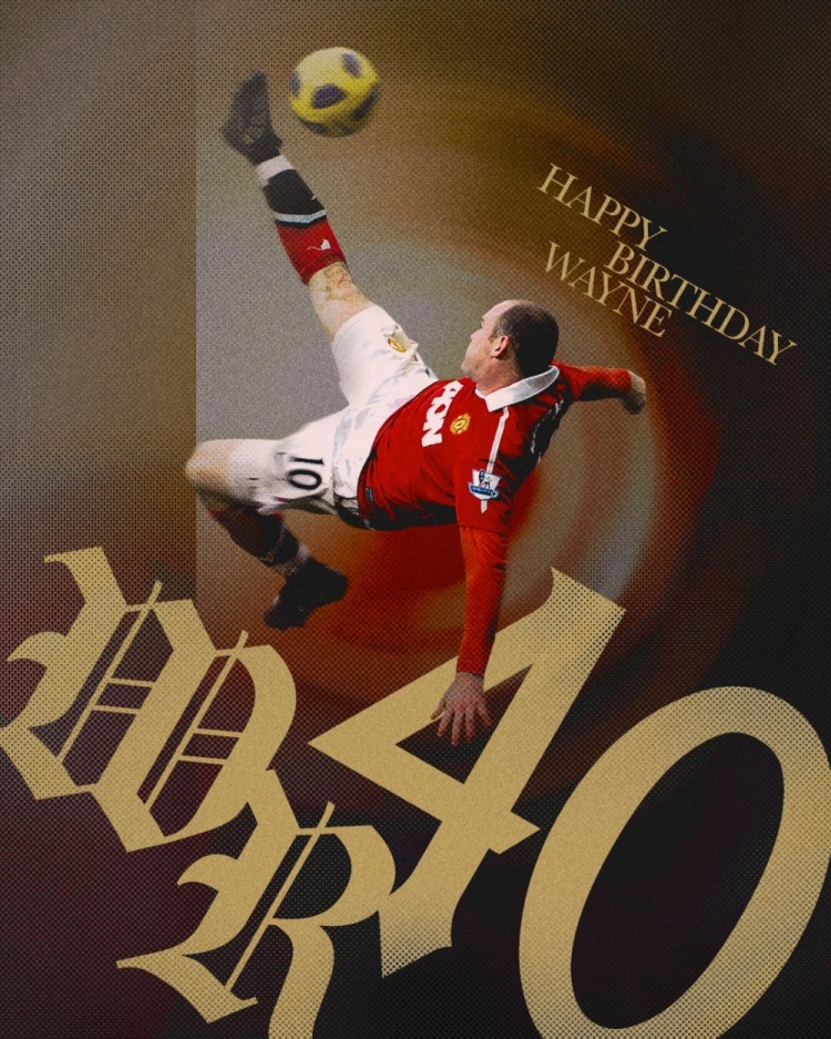 10月24日讯 今天是曼联外传球星韦恩-鲁尼的40岁诞辰,曼联官推晒出海报发文为他奉上道喜。