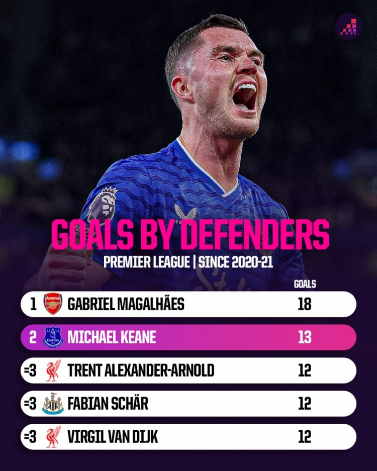 11月11日讯 德国转会市集统计了2020-2021赛季以来后卫球员在英超的进球数目,比肩出榜单,加布里埃尔18球居首,迈克尔·基恩13球次席。