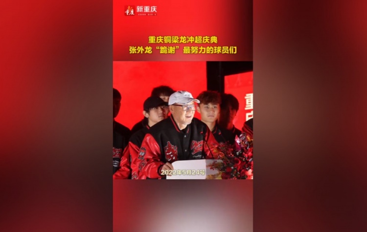 在说下这番话之后,张外龙跪谢铜梁龙球员。