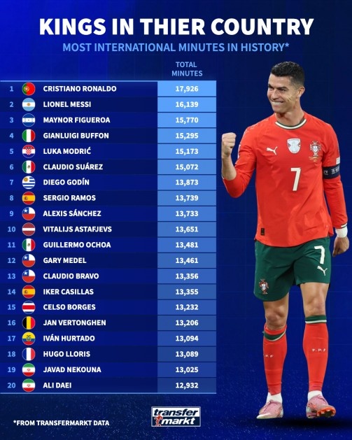 C罗(葡萄牙)——17926分钟