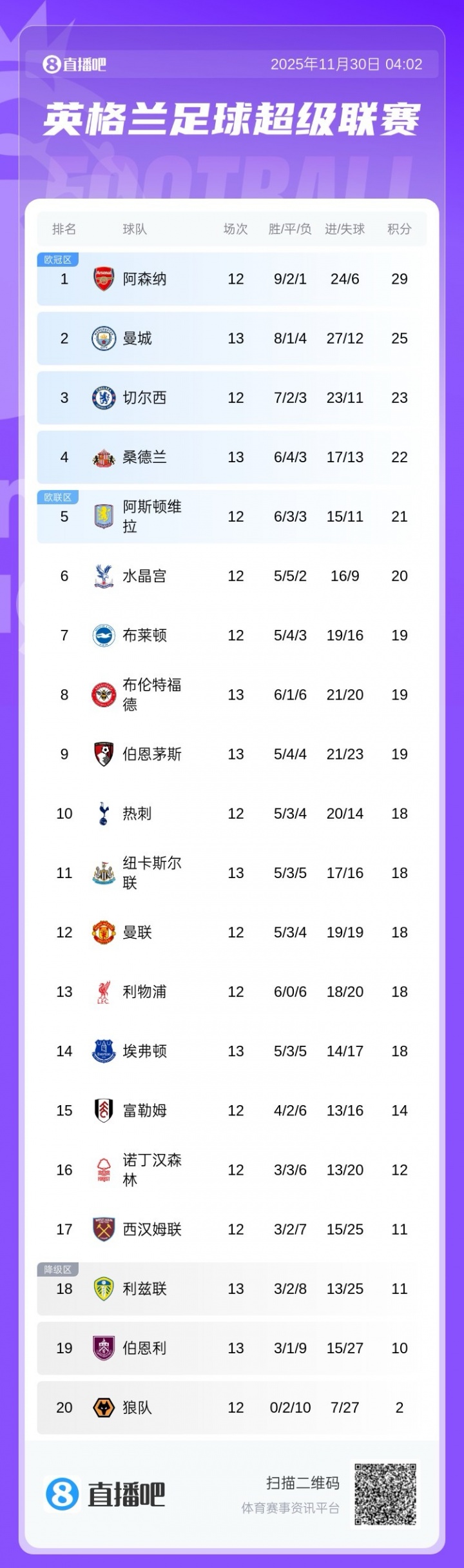 你的位置:欧洲杯直播 > 意甲 > 英超积分榜:曼城距榜首4分!桑德兰暂升第4,枪手明晨战切尔西