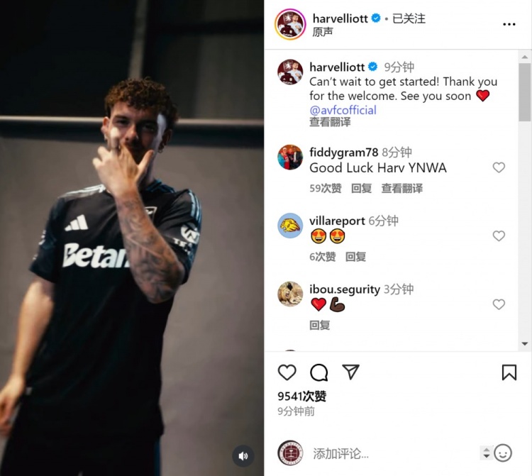 埃利奥特社媒晒出加盟维拉的宣传视频,配文:“迫不足待思要运转!感谢你们的迎接,回头见!”