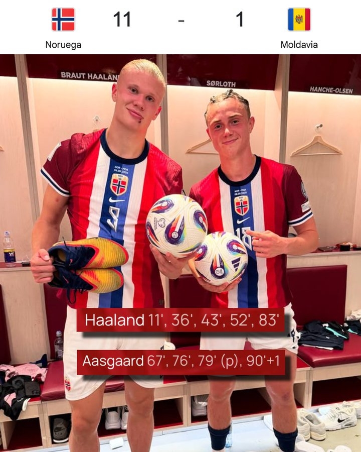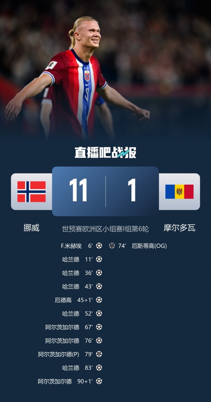 阿尔茨加尔德第64分钟替补登场,随后贯串攻入2粒进球,跟着他打入第79分钟的点球,23岁的他本场也杀青了帽子戏法,匡助球队9-1卓绝摩尔多瓦。最终全场挪威11-1狂胜摩尔多瓦!