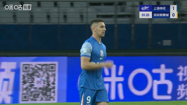 10月31日讯 中超第29轮,上海申花vs深圳新鹏城,比赛开场不到2分钟,安德烈-路易斯甩头破门,申花1-0跳跃新鹏城。