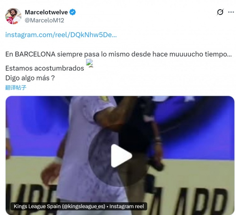 马塞洛社媒写谈:“在巴塞罗那,很久以来一直皆是如斯,咱们仍是习认为常了,还需要我多说吗?”