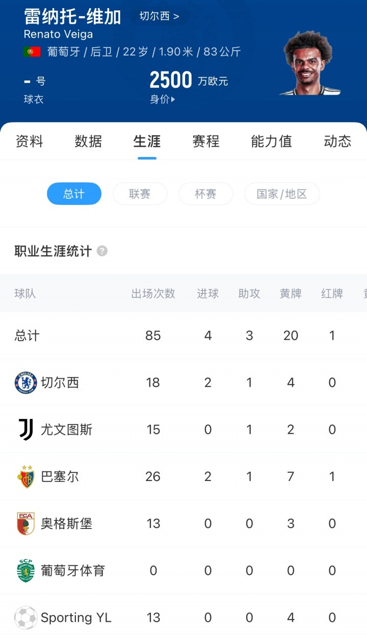 维加2024年7月以1400万欧加盟切尔西,签约至2031年6月。本年冬窗,维加租出至尤文,上赛季各项赛事他共出战33场比赛,孝顺2球2助攻,德回身价2500万欧。