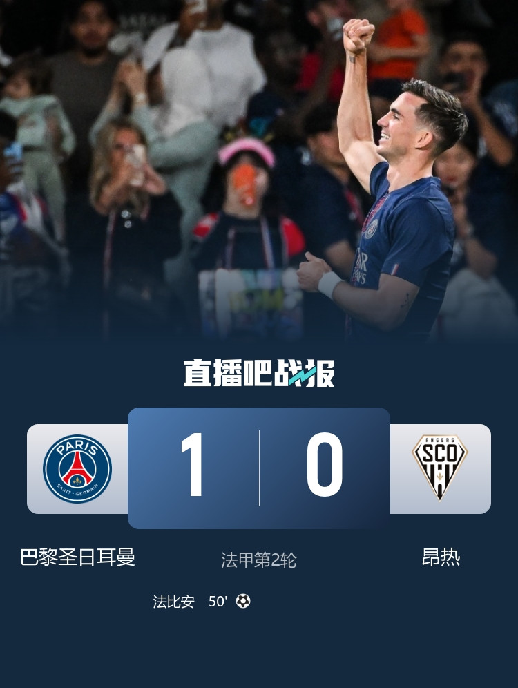巴黎凭借法比安的进球,1-0小胜昂热,巴黎在联赛前两轮均是一球小胜。