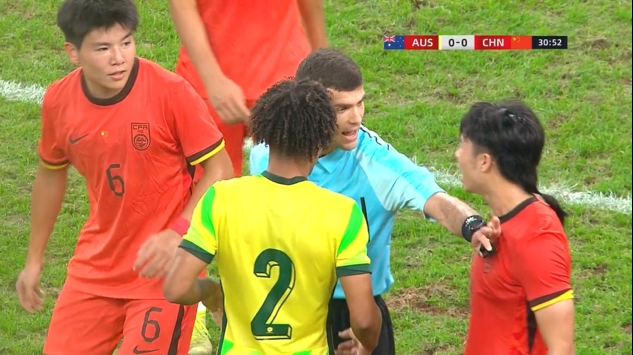 09月09日讯 U23亚洲杯预选赛第3轮,澳大利亚U23vs中国U22。比赛第31分钟,澳大利亚球员基利-亚当森在明知球已出界死球的情况下将球掷中计窝,评判员与其相似后辖下包涵莫得出牌。