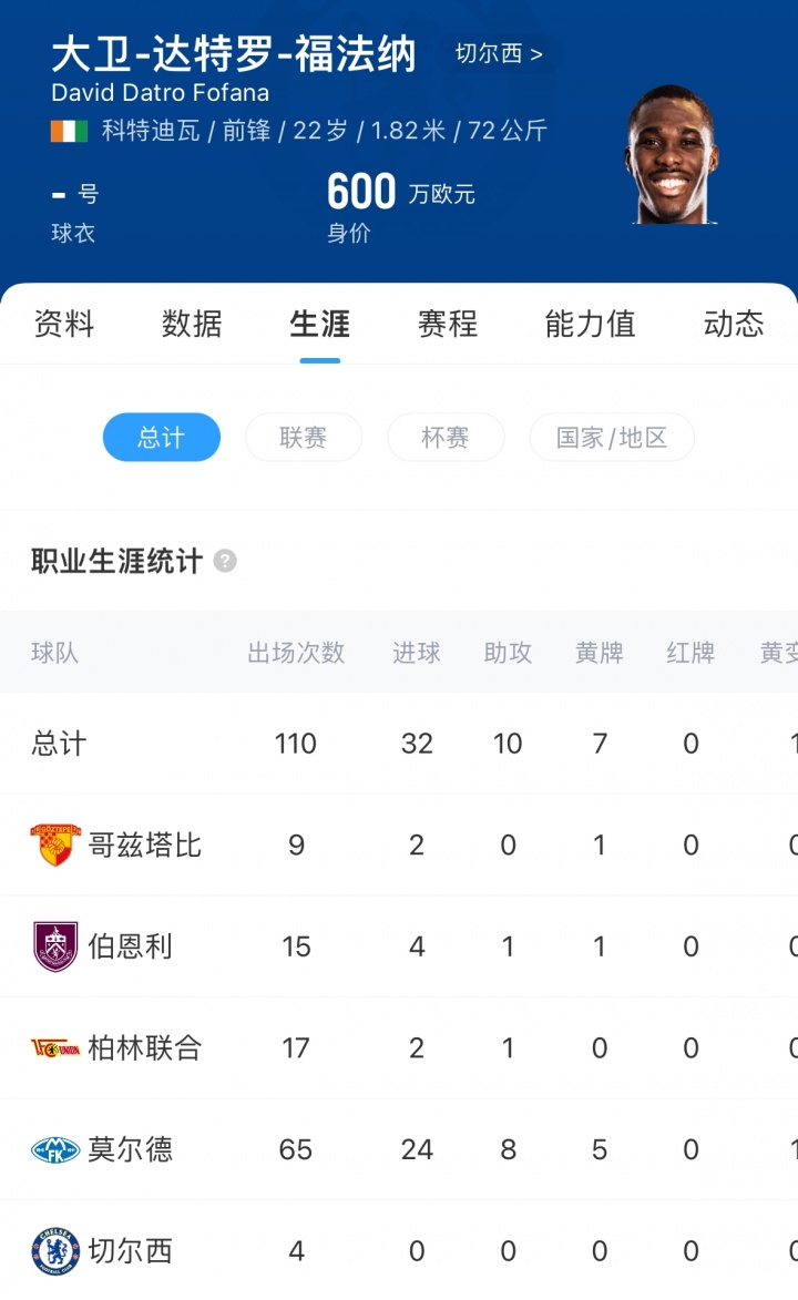 这位科特迪瓦球员上赛季前半程曾租赁效率于哥兹塔比,其作事糊口始于2020-2021赛季的莫尔德俱乐部。在莫尔德65场比赛中攻入24球的福法纳,于2022-2023赛季转会至英超劲旅切尔西。这名弓手还曾租赁效率于柏林鸠集和伯恩利俱乐部。
